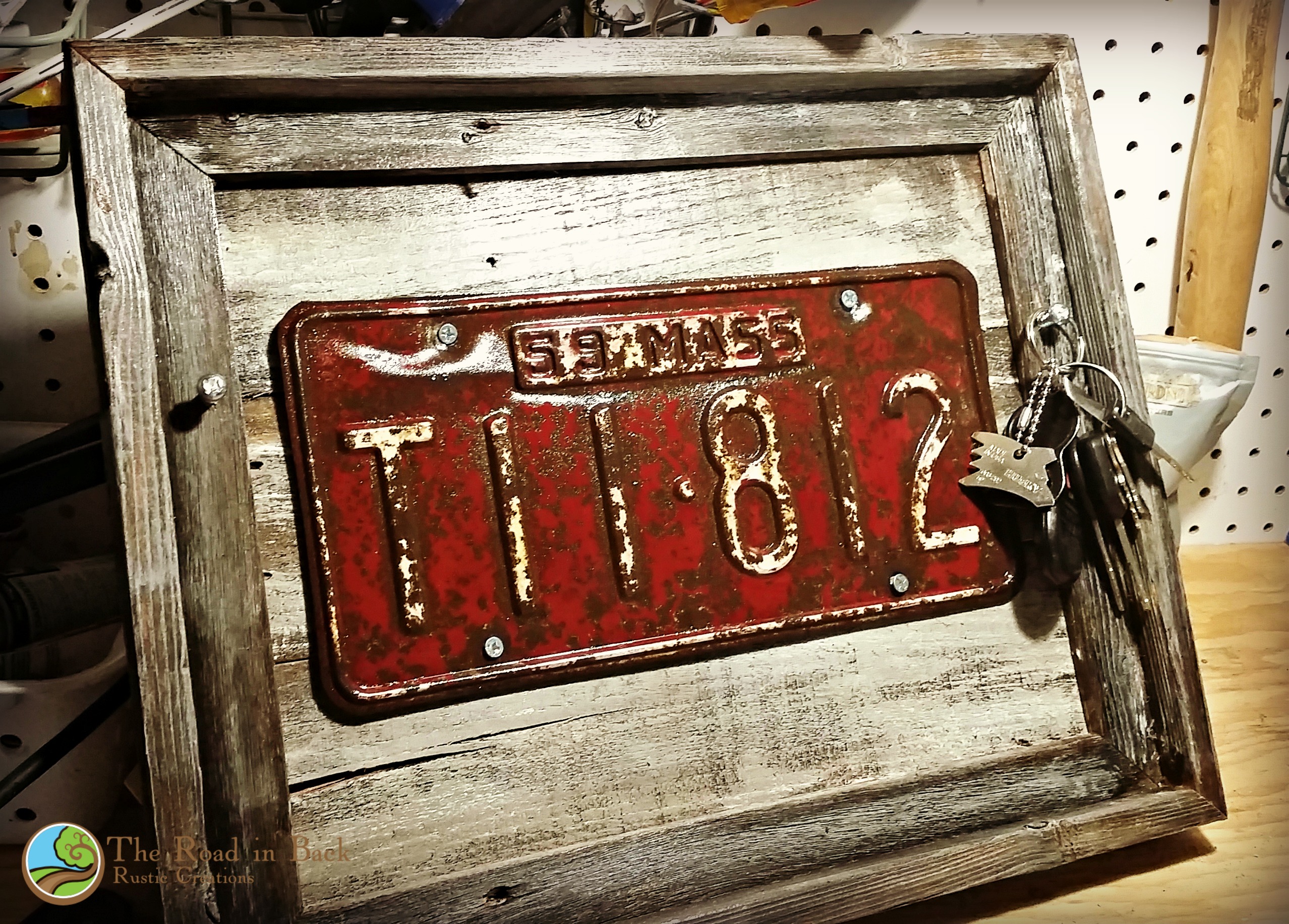1959 Massachusetts License Plate Key Holder Made with Reclaimed Pallet Wood–SOLD!